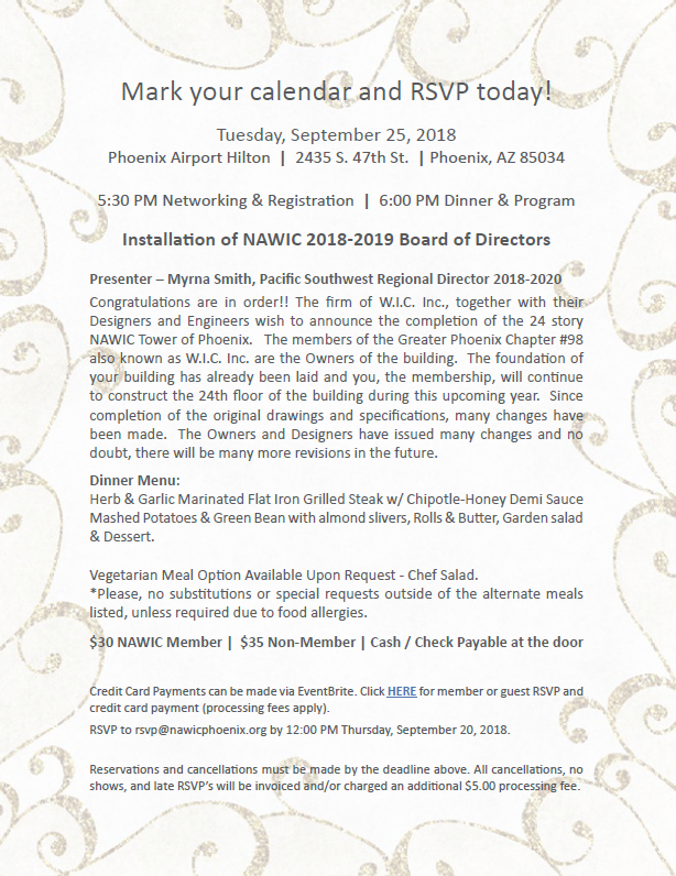 Please join us for the 2018-2019 Officers and Board Installation Ceremony September 25, 2018. See the flyer for RSVP information.