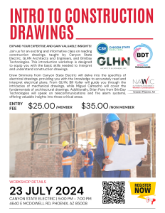 Join us for an exciting and informative class on reading construction drawings, taught by Canyon State Electric, GLHN Architects and Engineers, and BrinDay Technologies. This introduction workshop is designed to equip you with the basic skills needed to interpret and understand construction drawings.